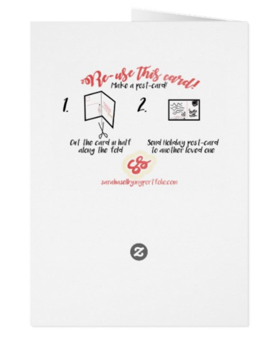 Inside of this card are instructions on how to reuse as a postcard and ornament.